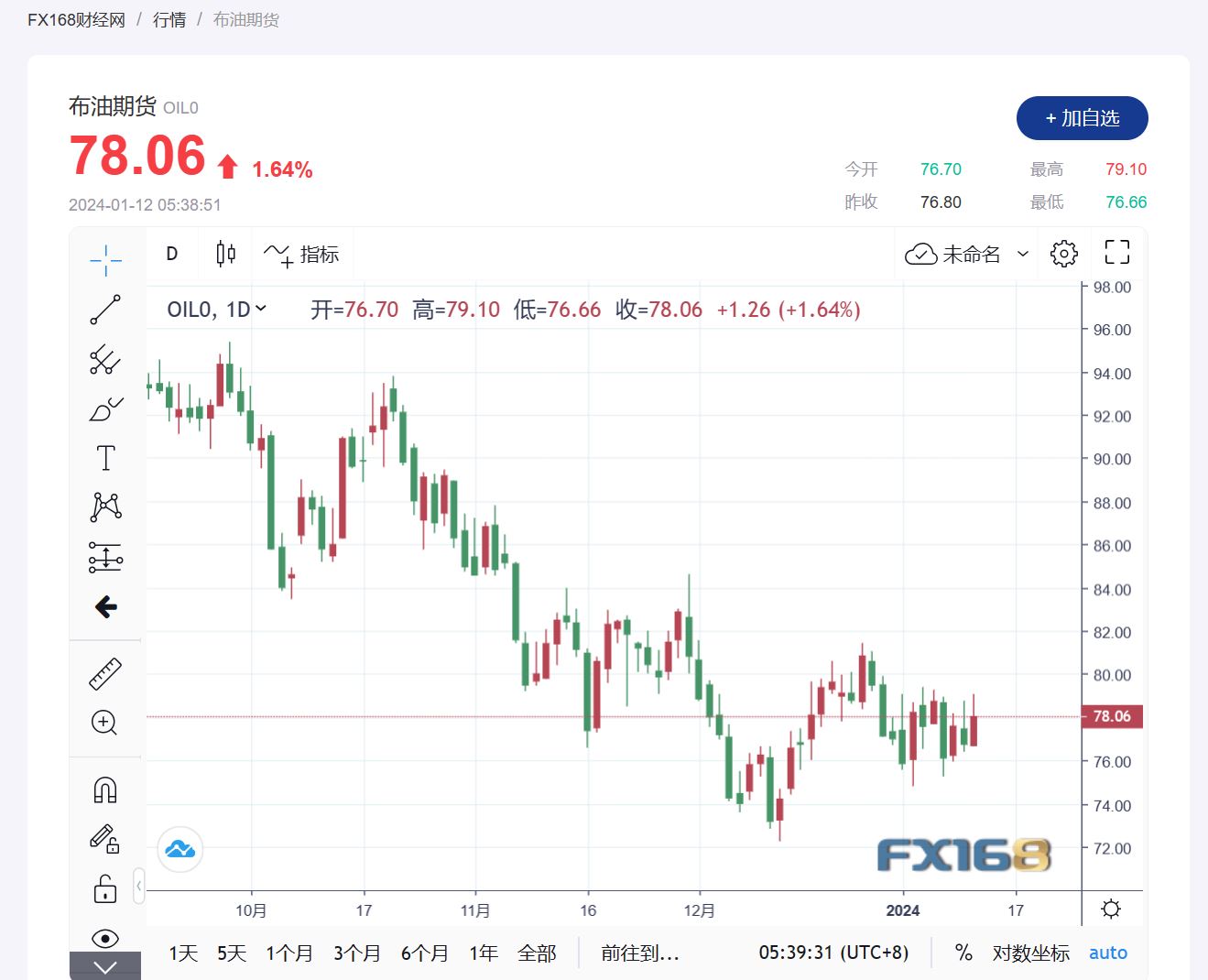 布伦特原油期货上涨0.61美元/桶,或0.8%,收报77.41美元/桶。截至发稿,现报78.06美元/桶,涨幅1.64%。