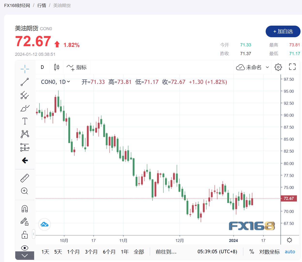 (美国西德克萨斯中质(WTI)原油期货走势图,来源:FX168)