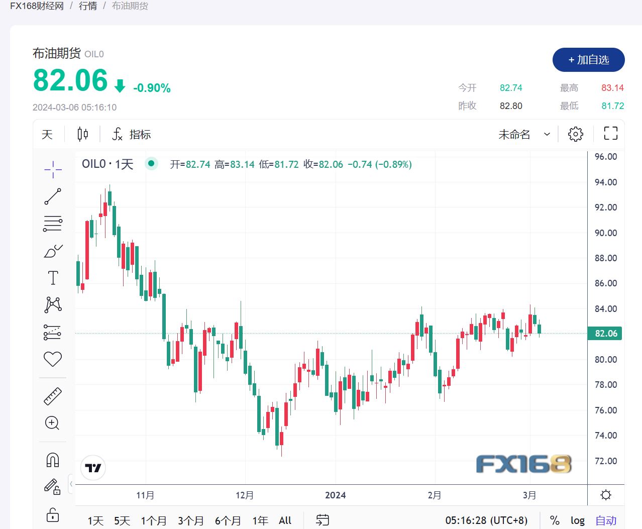 布伦特原油期货下跌0.76美元/桶,跌幅0.9%,收报82.04美元/桶。截至发稿,现报78.16美元/桶,跌幅0.74%。
