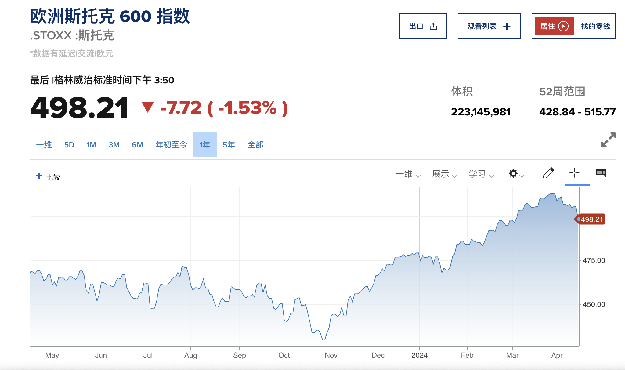 FX168财经报社(北美)讯 由于投资者关注中东地缘政治紧张局势加剧,欧洲股市周二(4月16日)收低。斯托克600指数暂时下跌1.53%,跌破500心理关口,收报498.21点。所有行业和主要交易所均出现亏损。矿业股领跌,下跌 3.1%,银行股下跌 2.6%。