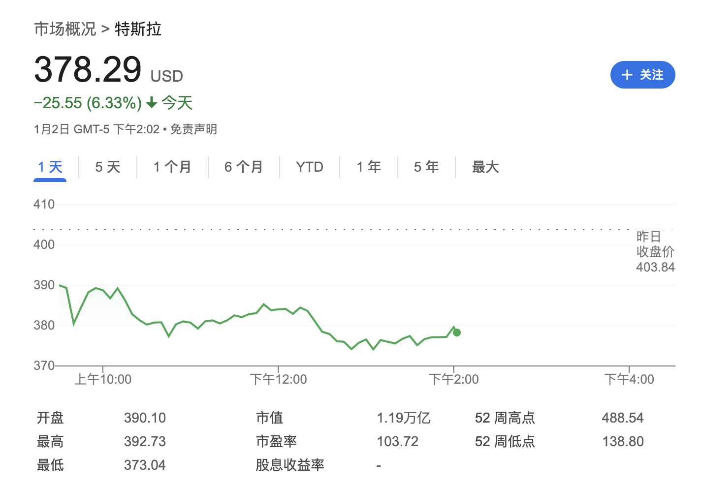 FX168财经报社(北美)讯 周四(1月2日),特斯拉公布了十多年来首次年度销量下滑的消息,引发股价下跌6.33%。