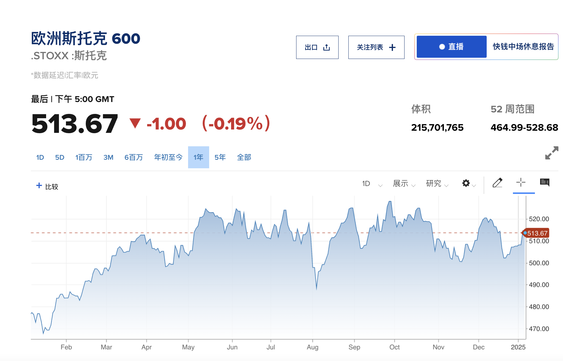 斯托克600指数全天走势波动,早盘一度上涨,但最终收跌0.27%,收报513.67点。各主要板块大多以下跌收盘,其中医疗保健、金融服务和媒体板块成为少数上涨的领域。