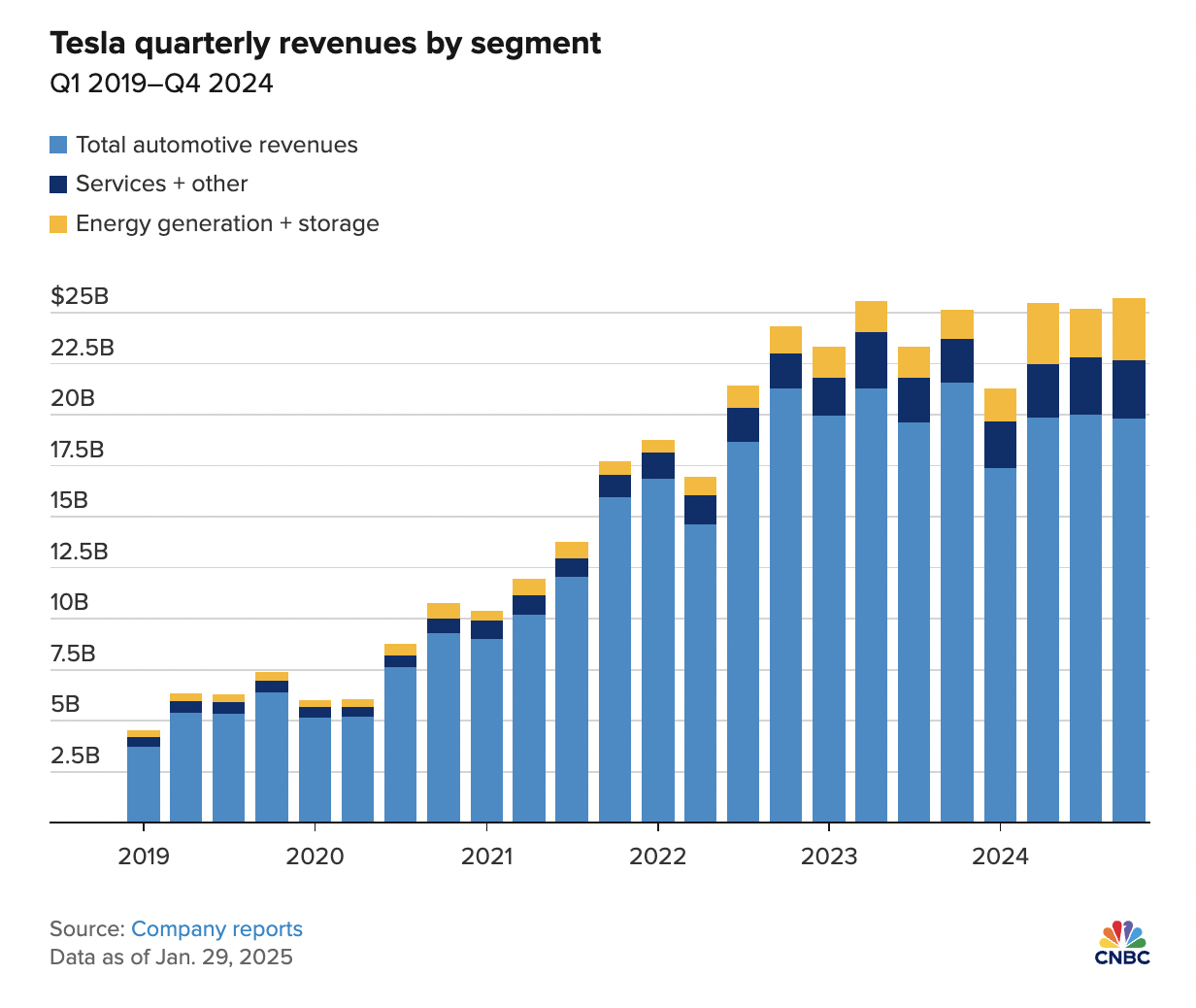 尽管汽车业务承压,特斯拉的能源业务表现抢眼。第四季度,该业务收入达到30.6亿美元,同比增长113%,远超汽车业务的增长速度。该业务包括太阳能与储能产品,被视为特斯拉未来的重要增长支柱。