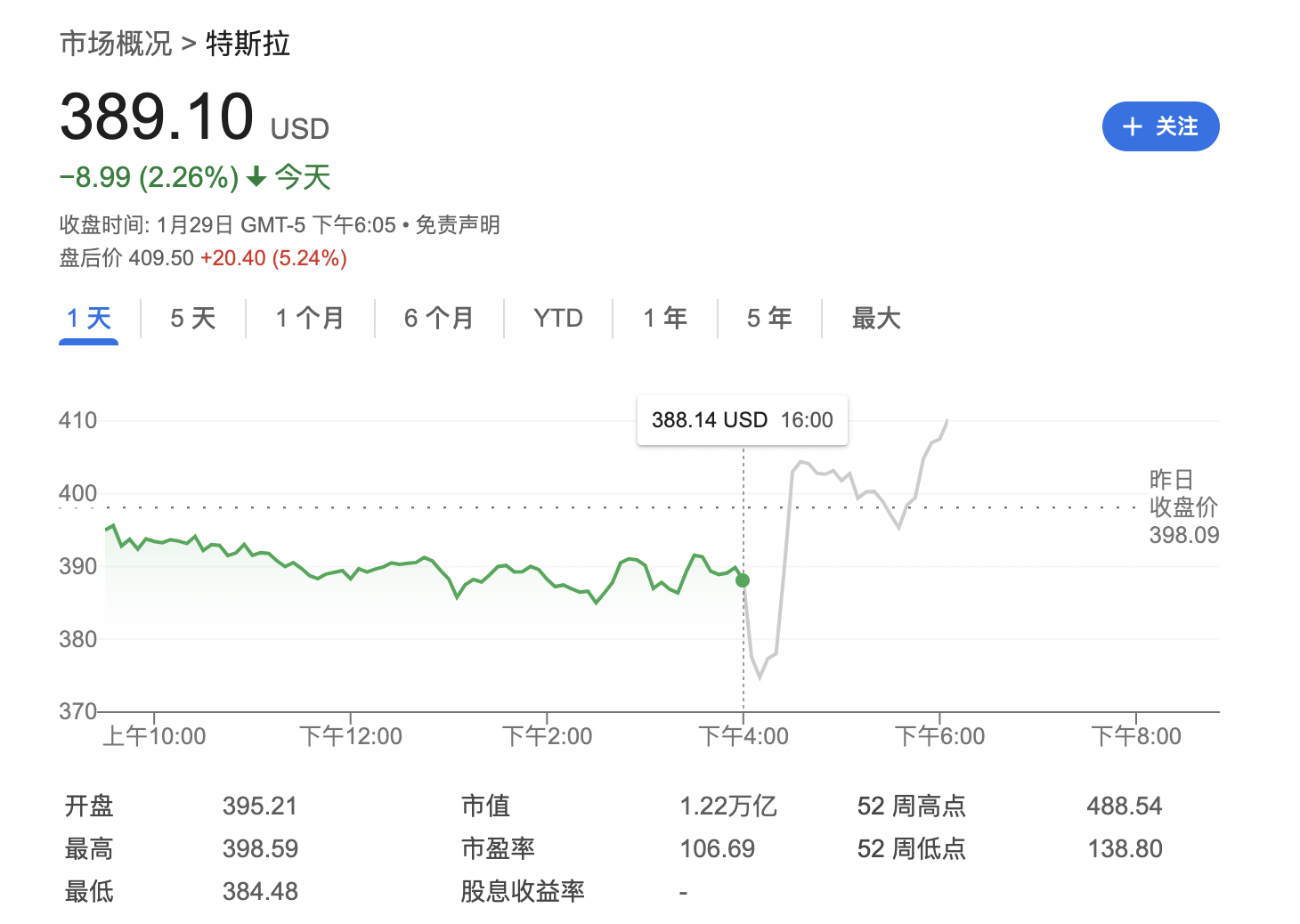 特斯拉财报不及预期但盘后上涨,马斯克押注自动驾驶