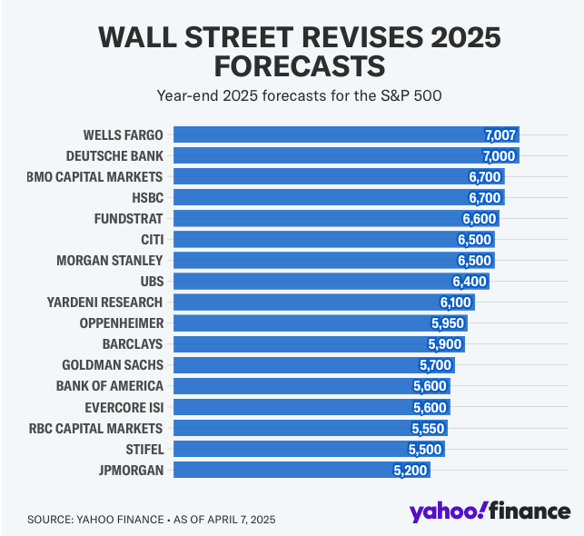 Evercore现在是雅虎财经追踪的三个股票策略团队之一,随着特朗普的高额关税在股市蔓延,这些团队已经从看到标普500指数的正回报转变为预测股市的负回报。标准普尔500指数在2024年收于5881点。