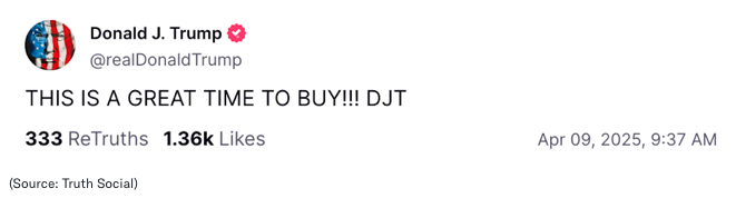 在周三的后续帖子中,特朗普表示,市场创造了一个绝佳的买入机会。