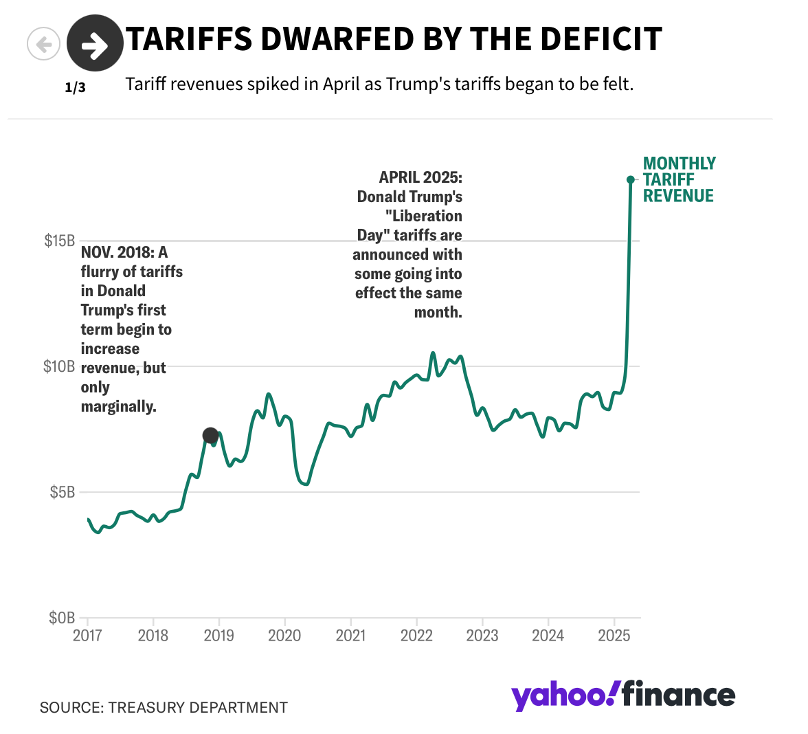 例如,4月份的关税总收入不到美国每月仅支付国债利息的四分之一。