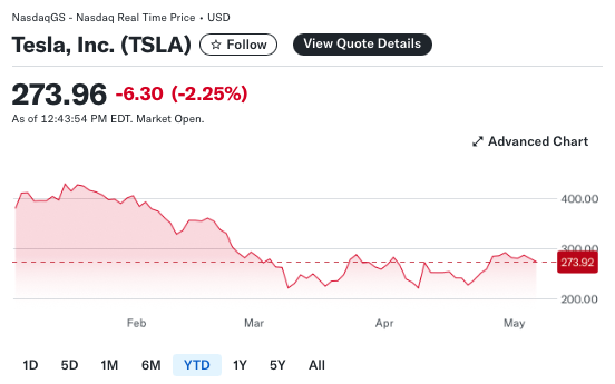 彭博社对欧洲各国汽车协会的调查显示,特斯拉在法国(-59%)、丹麦(-67%)和瑞典(-81%)等关键市场均出现大幅下滑。这延续了该品牌3月以来在欧洲的颓势,导致其股价周二(5月6日)早盘下跌2%。
