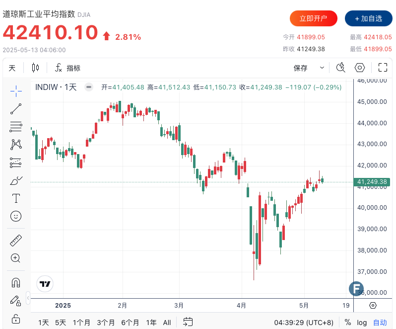 道琼斯指数收涨1160.72点,涨幅2.81%,收报42410.10点;