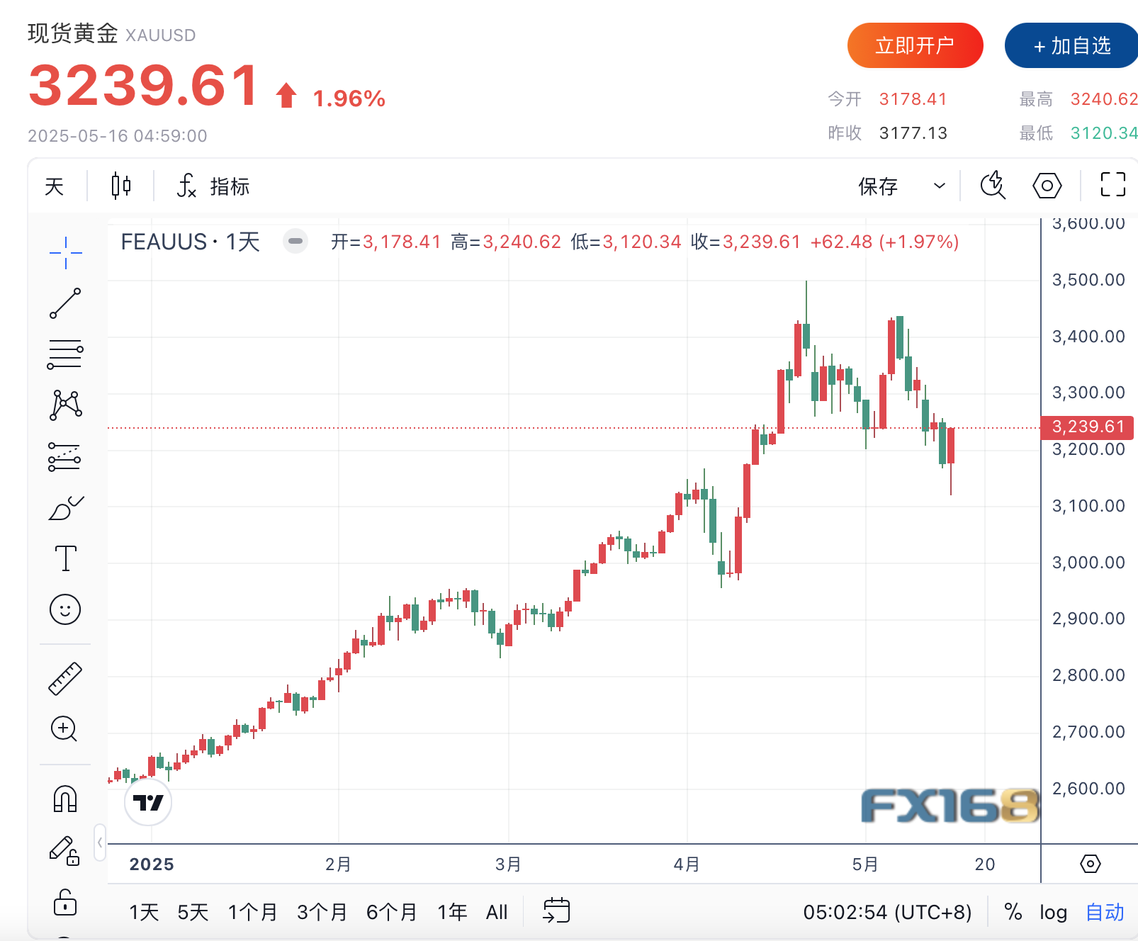 FX168财经报社(北美)讯 周四(5月15日),受美元走软和美国经济数据疲软的提振,而俄罗斯总统普京未出席和平会谈则推动了部分避险买盘。