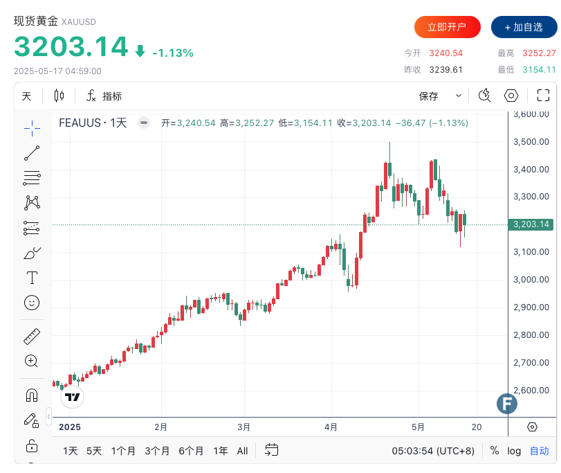 FX168财经报社(北美)讯 5月16日(周五),黄金价格已从4月创下的略高于3500美元/盎司的历史高点下跌近10%,因美中贸易紧张局势缓和削弱了上涨势头,但部分分析师仍坚持看涨前景,因黄金的底层支撑依然强劲。最新数据显示美国消费者信心恶化程度超预期,通胀预期再次攀升,黄金市场在周末前走低。