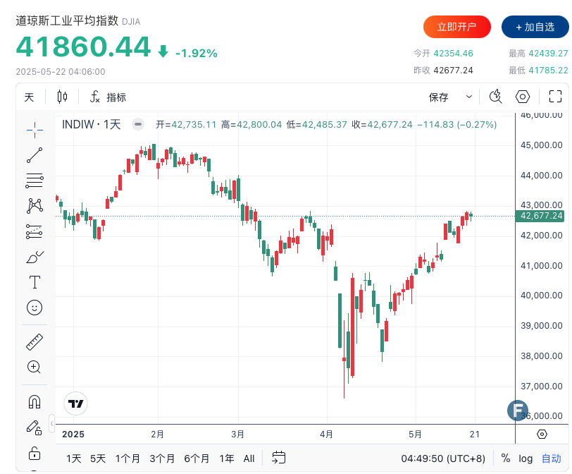 道琼斯指数收跌816.92点,跌幅1.91%,收报41860.32点;