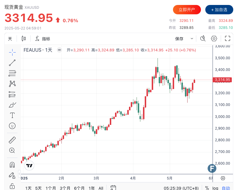 FX168财经报社(北美)讯 周三(5月21日),黄金价格连续第三日上涨并触及一周高点,美元走软及经济地缘不确定性引发的避险需求共同推高黄金吸引力。