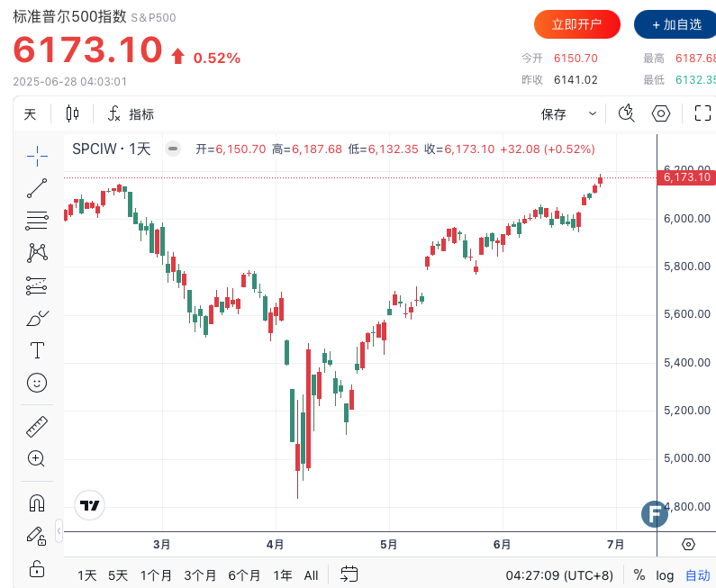 标普500指数收涨32.08点,涨幅0.52%,报6173.10点。