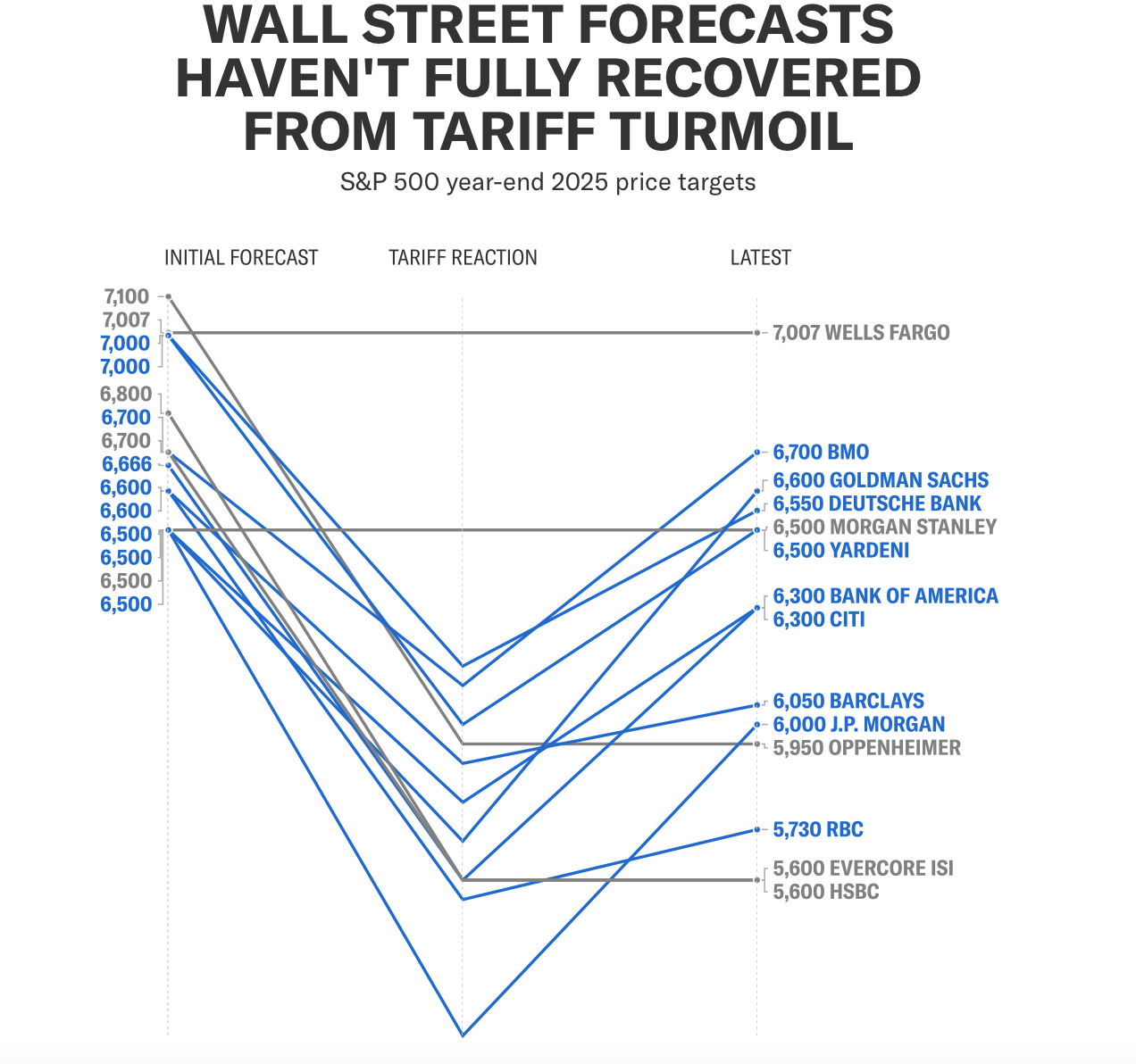 尽管贸易关税博弈不断制造不确定性,华尔街主流机构对美股的信心并未明显动摇。高盛和美银相继上调标普500年底点位预期,反映出在利率预期转向、债券收益率走低及投资者对短期风险的适应下,市场整体仍维持风险偏好。
