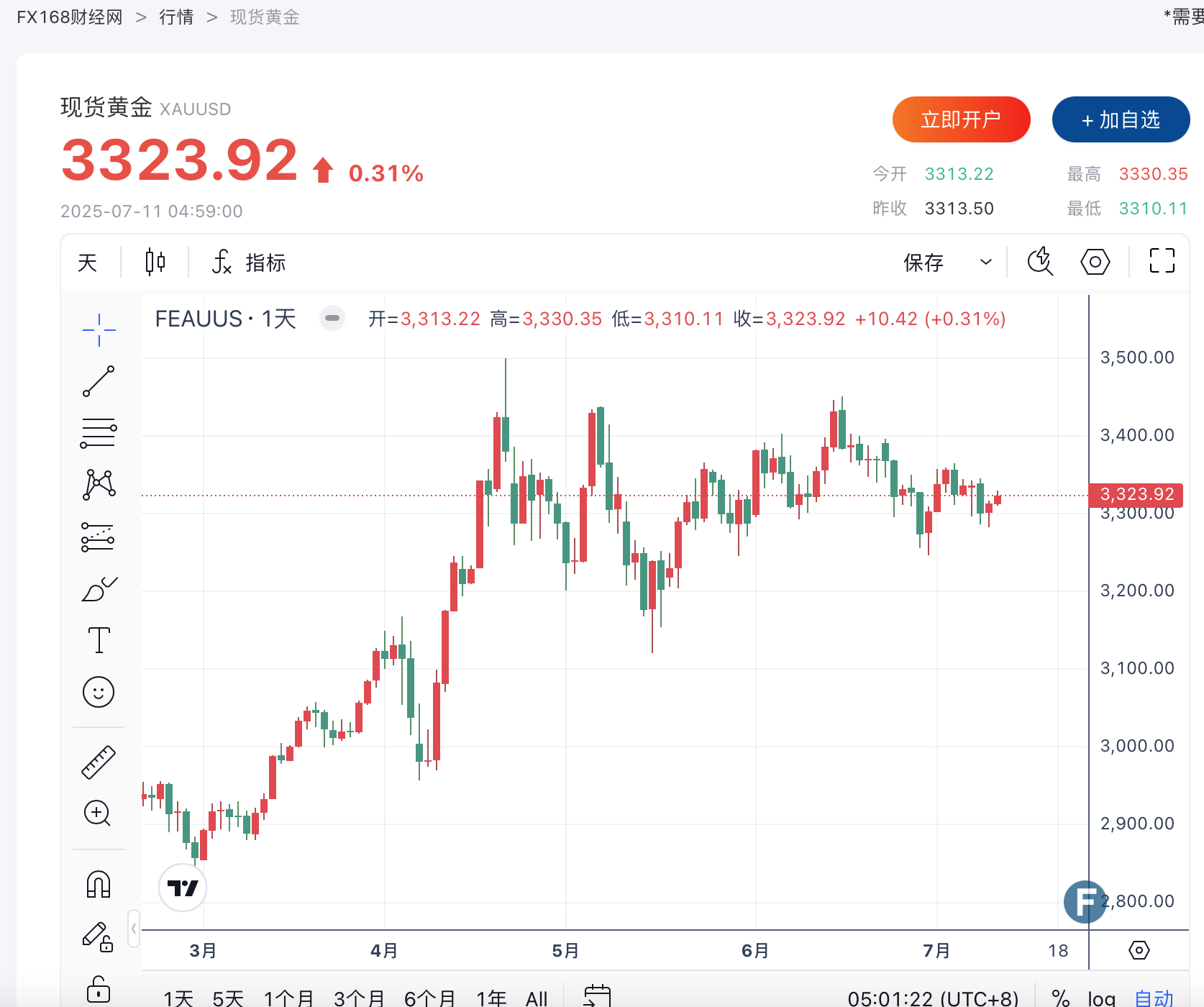 (现货黄金走势图,来源:FX168)