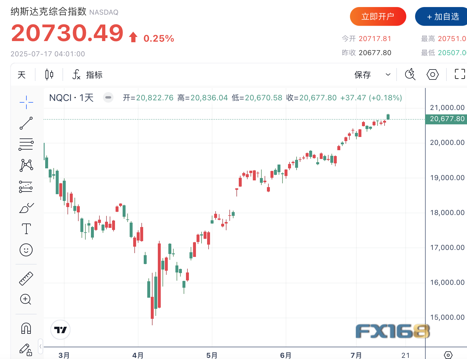 (美股走势 图片来源:FX168)