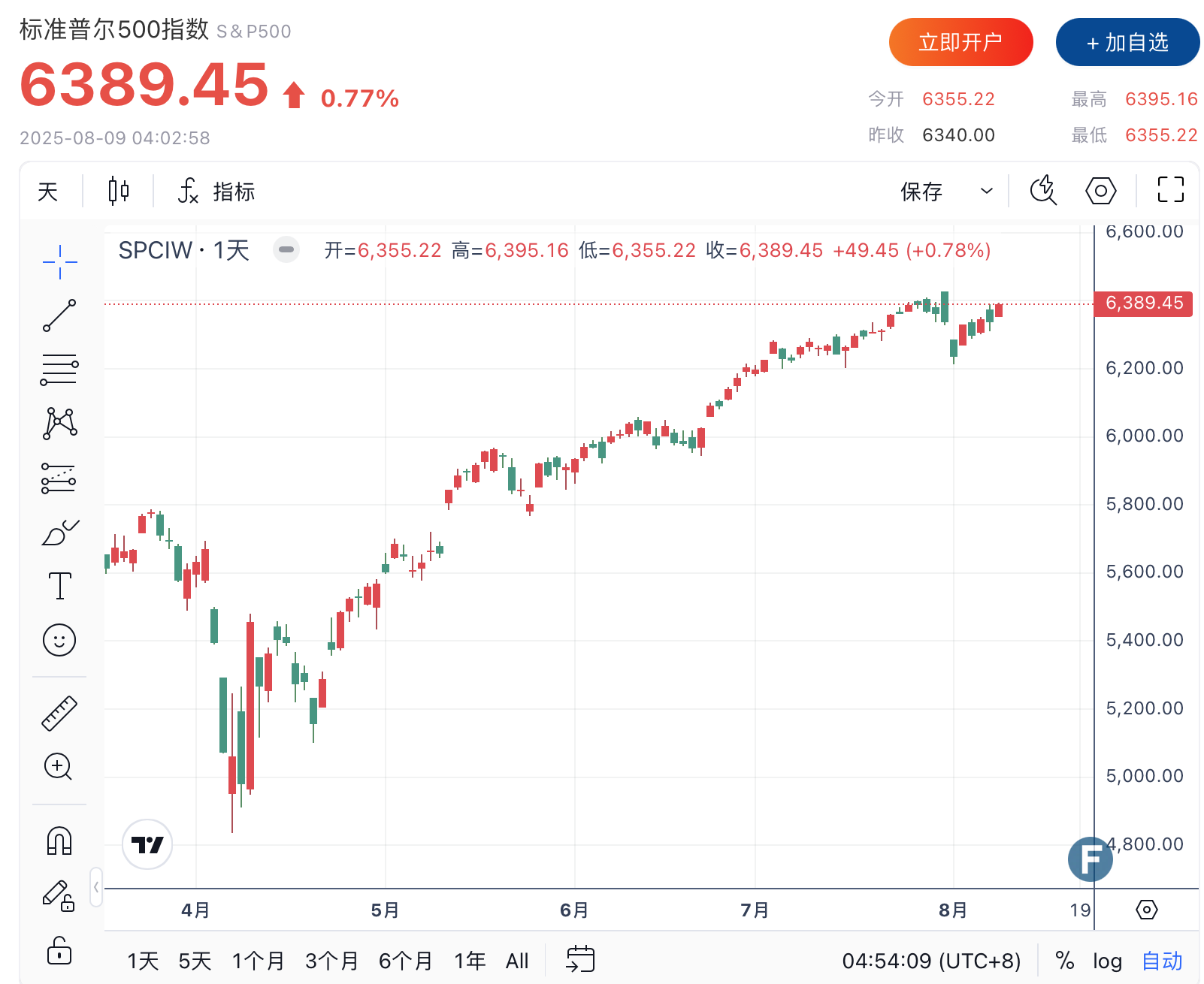 标普500指数收涨49.45点,涨幅0.78%,报6389.45点;