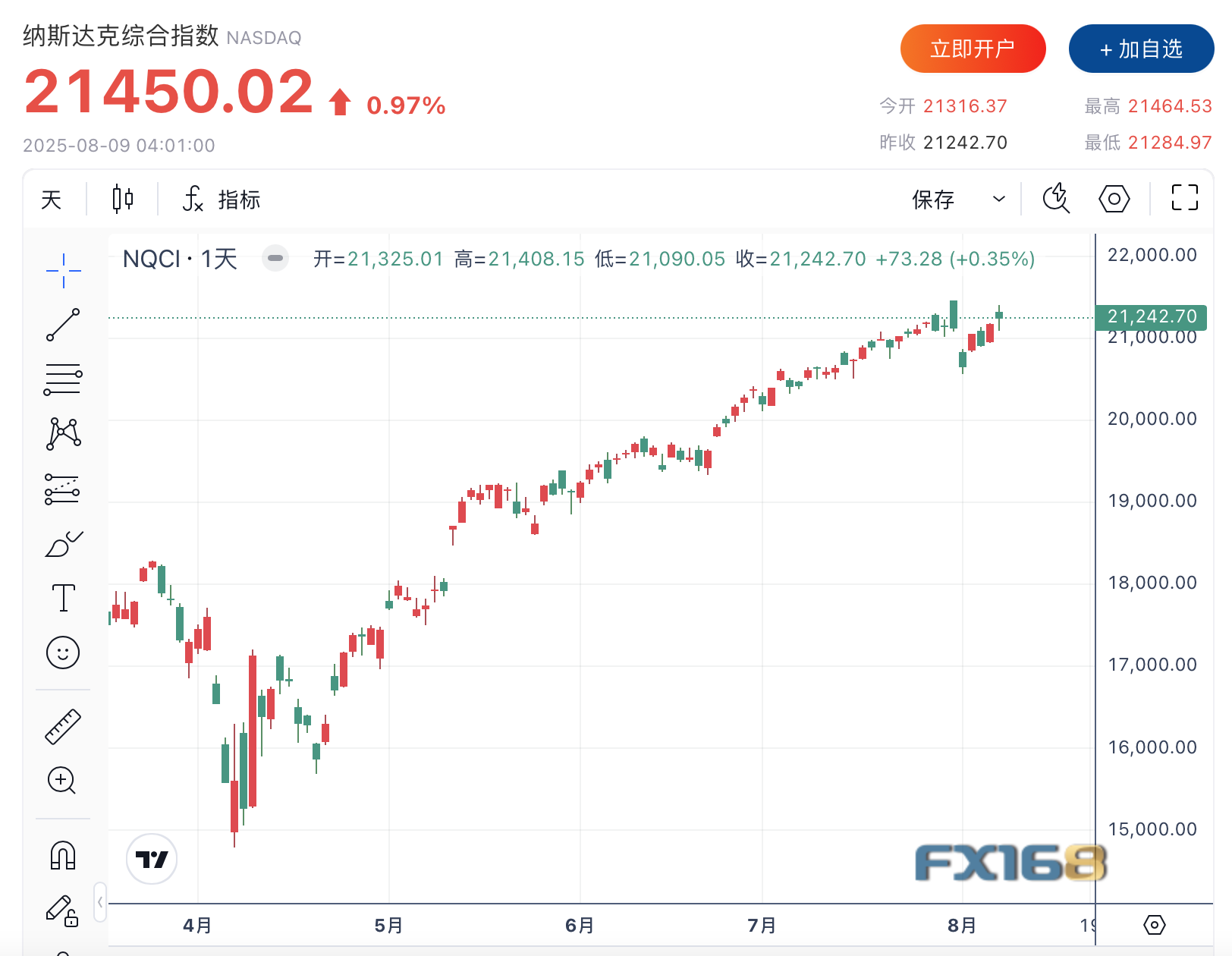 FX168财经报社(北美)讯 周五(8月8日),美股三大股指全线收高,纳斯达克综合指数连续第二日刷新历史收盘新高,标普500指数在科技股引领下录得周涨幅,距离历史高位仅一步之遥。市场情绪受到特朗普提名斯蒂芬·米兰(Stephen Miran)出任美联储理事、白宫澄清黄金关税政策传闻等多重消息提振,同时投资者也在押注9月联储降息的可能性进一步上升。