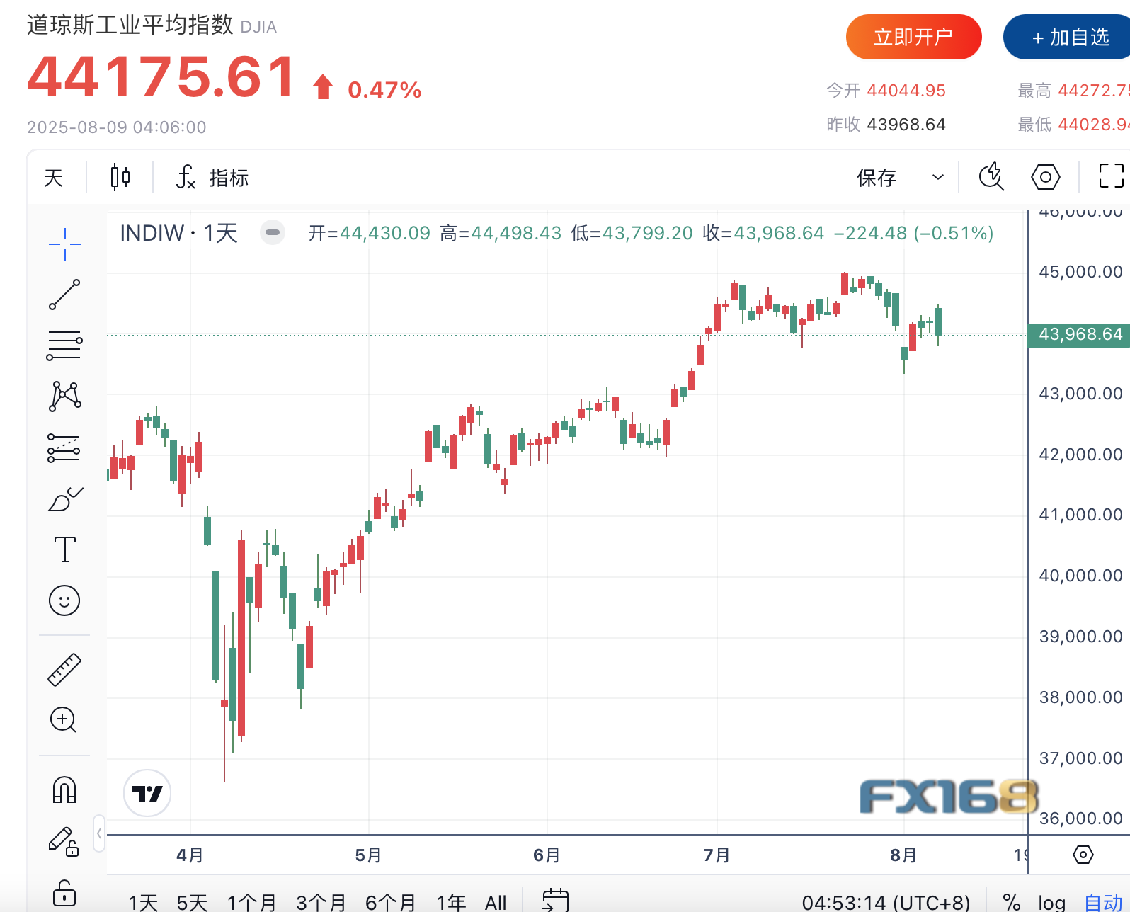 道琼斯指数收涨206.97点,涨幅0.47%,报44175.61点;