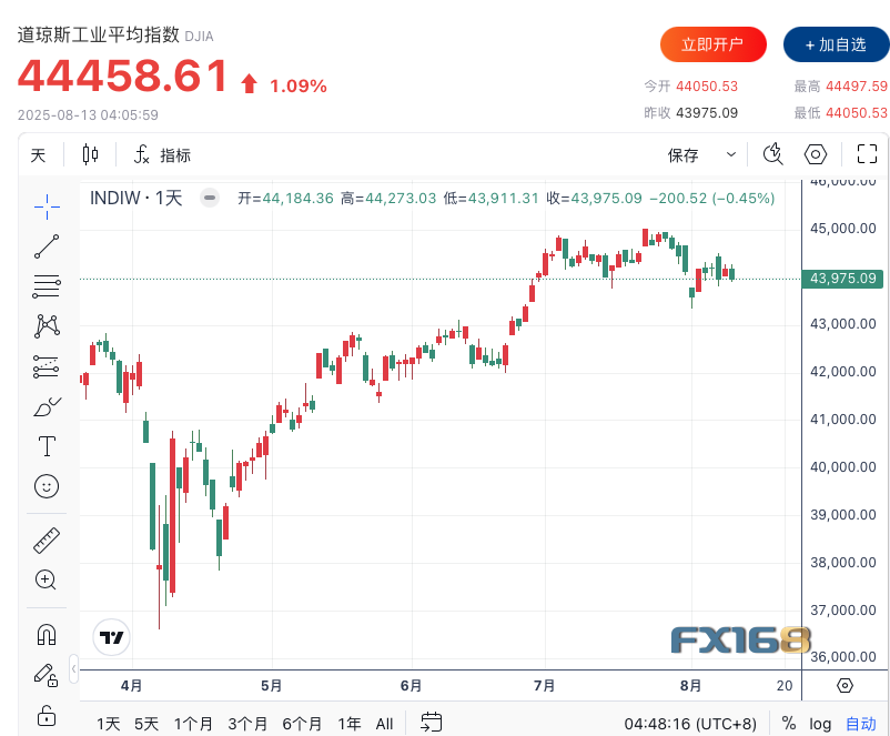 道琼斯工业平均指数上涨483.52点,涨幅1.10%,报44,458.61点;