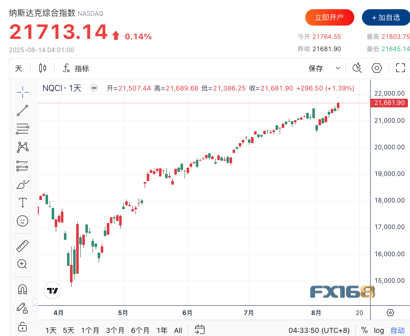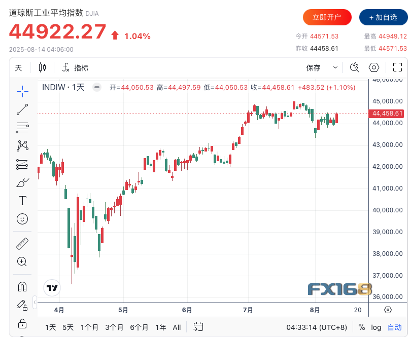 FX168财经报社(北美)讯 周三(8月13日),在美联储9月降息预期几近笃定的背景下,美股三大指数集体收涨,其中标普500指数与纳斯达克指数连续第二日创下收盘历史新高,道琼斯工业平均指数涨幅居前。市场情绪受到温和通胀数据、强劲企业财报以及宽松预期的多重支撑,但个股表现分化明显,部分热门股剧烈波动。