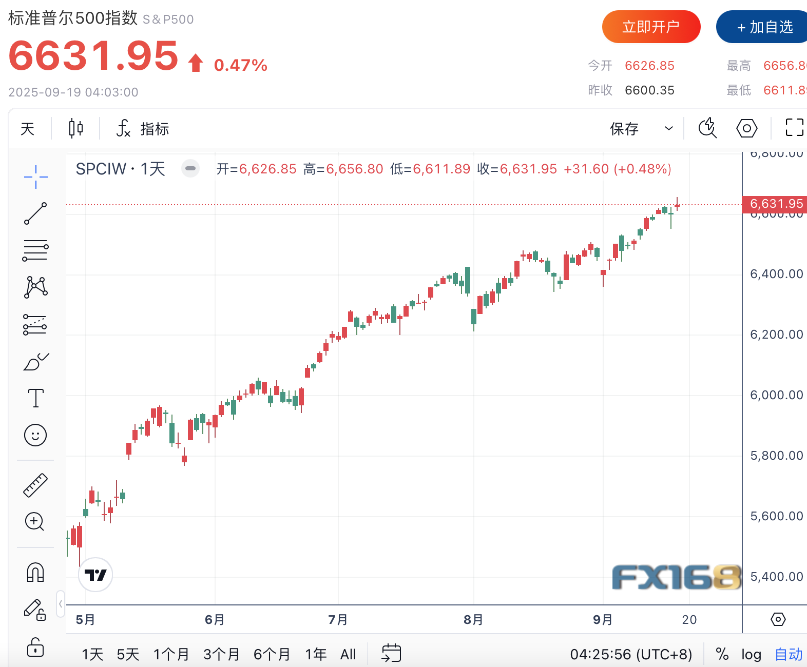 标普500指数上涨31.60点,涨幅0.48%,报6,631.95点;
