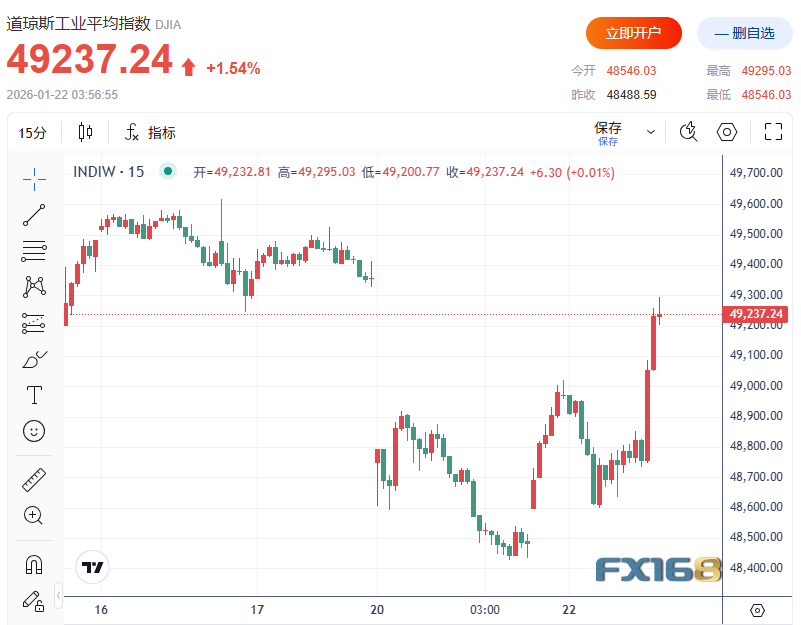 板块层面,英伟达、AMD等科技股领涨,资金重新回流此前遭到减仓的成长股;此外,特朗普在达沃斯还提及将推动国会落实“信用卡利率上限10%”提案(但国会支持度仍存不确定性),相关表态也带动银行股走强,花旗与第一资本一度均上涨约1%。