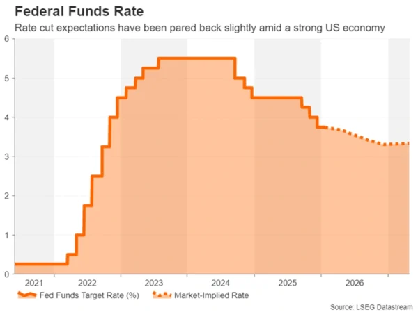 尽管近期通胀有所放缓,美联储官员仍保持谨慎。一方面,自2021年以来通胀仍未触及2%目标,若未能实现目标将影响公信力;另一方面,美国经济增长强劲,亚特兰大联储GDPNow模型预计2025年末季度增长率达5.4%。因此,美联储周三不太可能暗示未来加快降息节奏。鲍威尔可能会强调经济表现,以证明谨慎立场合理,但若释放超出2026年点阵图预计的多次25个基点降息预期,将利好市场。