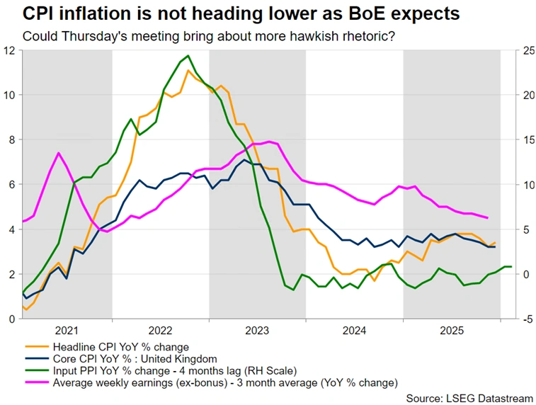 不过,英国央行的“内在鸽派倾向”仍不容低估,贝利可能再次试图在鸽鹰之间维持微妙平衡,在维持利率不变的同时继续为未来降息保留空间。