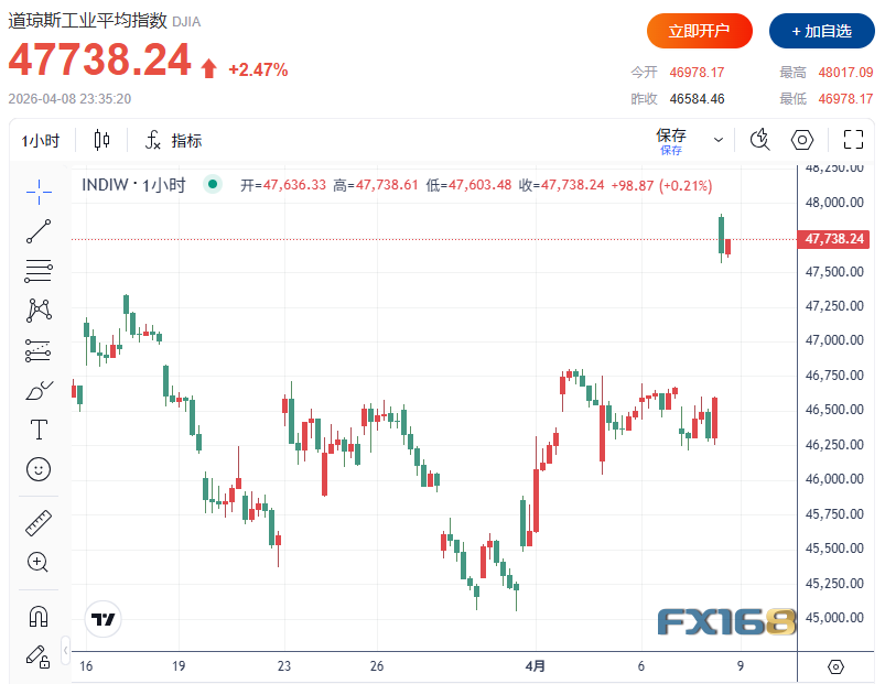 FX168财经报社(北美)讯 随着美国总统特朗普同意与伊朗达成为期两周的停火协议,市场对霍尔木兹海峡恢复通航的预期迅速升温,推动国际油价周三(4月8日)大幅跳水,美股三大指数高开高走,亚洲与欧洲股市同步上涨,加密货币市场也显著走强,美元指数则承压下滑。不过,市场乐观情绪背后仍伴随着较大不确定性,尤其是停火能否维持、霍尔木兹海峡能否真正恢复全面通航,仍将决定后续全球能源与风险资产的走势。
