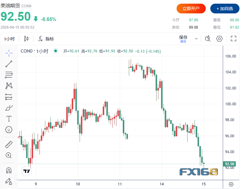 不过,周二国际油价明显回落,显示市场开始对“最坏供给冲击情形”进行修正。美市盘中,美国WTI原油期货下跌超7%,触及91.92美元/桶低点;布伦特原油跌约4%,至95.34美元/桶附近。