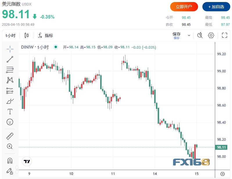 汇市方面,美元继续承压。由于投资者开始为中东局势可能出现外交突破进行布局,美元周二逼近连续第七个交易日下跌。美元指数下跌0.3%,至98.11附近,接近3月2日以来最低水平,也就是美以对伊朗战争爆发后首个交易日以来的低位区域。